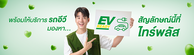 EV READY ที่แสดงความพร้อมในการให้บริการรถวีอีแล้ว โดยไทร์พลัสตั้งเป้าผลักดันให้ศูนย์บริการทุกแห่ง