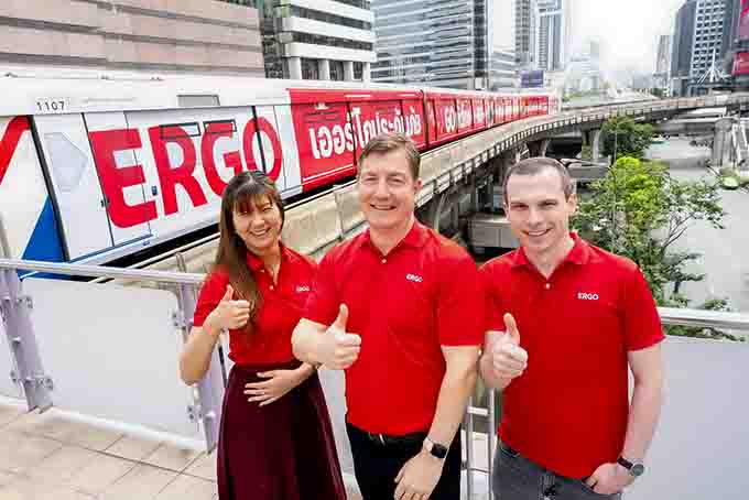 รถไฟฟ้าขบวนเออร์โกเริ่มต้นอวดโฉมแล้วตั้งแต่วันที่ 16 ธันวาคม 2567 ถึง 15 มีนาคม 2568 ในเส้นทางสายสีเขียวทั้งสุขุมวิทและสีลม พร้อมป้ายโฆษณาดิจิทัลใน 11 สถานี เพื่อให้ผู้ที่อาศัยอยู่ในกรุงเทพฯ ได้รู้จักกับเออร์โกประกันภัย แบรนด์จากประเทศเยอรมัน ที่ได้รับความไว้วางใจจากลูกค้ากว่า 11 ล้านรายทั่วโลก นำเสนอผลิตภัณฑ์ที่หลากหลายตอบโจทย์ทุกไลฟ์สไตล์ ทั้งประกันภัยรถยนต์ ซึ่งเป็นผลิตภัณฑ์ที่ได้รับความไว้วางใจจากลูกค้ามากที่สุด รวมทั้งประกันภัยอุบัติเหตุ ประกันภัยทรัพย์สิน ประกันภัยการเดินทาง และประกันสุขภาพ พร้อมให้บริการแก่ลูกค้าแล้วมากกว่า 160 สาขาทั่วประเทศ สายด่วน Call Center 1219 และเว็บไซต์ www.ergo.co.th เพื่อส่งมอบความสะดวกและประสบการณ์ที่ดีที่สุดให้กับลูกค้าสอดคล้องกับภารกิจหลักของเออร์โกประกันภัยในการทำประกันภัยที่เป็นเรื่องสำคัญให้เรียบง่าย