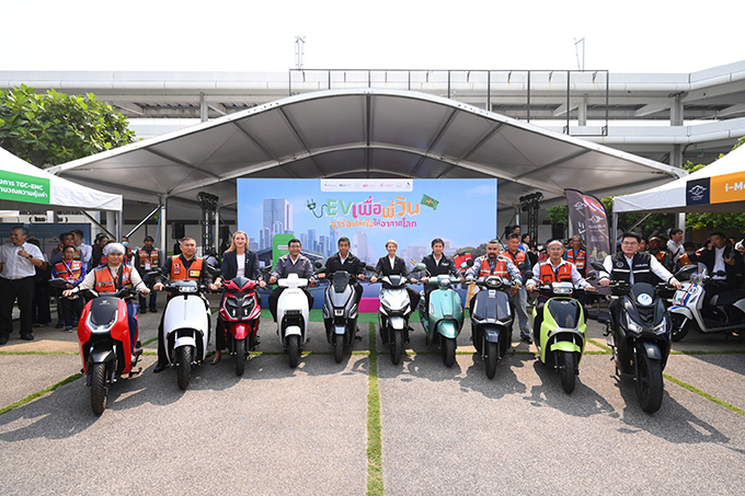โครงการ “EV เพื่อพี่วิน” โดยกรุงเทพมหานครและ GIZ ร่วมกับมหาวิทยาลัยเทคโนโลยีพระจอมเกล้าธนบุรี และสมาคมยานยนต์ไฟฟ้าไทย (EVAT) ภายใต้โครงการ TGC EMC มุ่งเดินหน้าแก้ข้อจำกัดเชิงโครงสร้างเพื่อสนับสนุนให้ผู้ประกอบการวินมอเตอร์ไซค์หันมาใช้ยานยนต์ไฟฟ้า ผ่านการทดลองโมเดลเช่าขับในอัตรา 75-140 บาทต่อวัน ควบคู่กับการจัดเตรียมระบบอัดประจุทั้งแบบชาร์จและสลับแบตเตอรี่ที่ไม่ต้องรอชาร์จ พร้อมเปิดโอกาสให้ผู้ขับขี่วินมอเตอร์ไซค์และพนักงานกวาดถนนของ กทม. กว่า 200 คนในเขตดินแดงและพญาไท ร่วมทดลองขับและรับข้อมูลด้านต้นทุน การดูแลรักษา และระบบสนับสนุนที่จำเป็นต่อการทำงานจริง ก่อนคัดเลือก 30 คนให้ทดลองใช้งานต่อเนื่องเป็นเวลา 1 เดือนโดยไม่เสียค่าใช้จ่าย เพื่อเก็บข้อมูลเชิงลึกสำหรับการพัฒนาแนวทางขยายผลในระดับเมือง