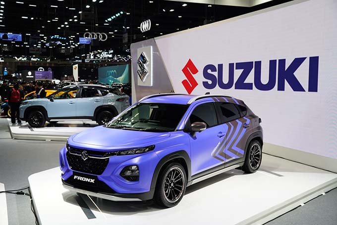 การจัดแสดงรถยนต์จะแบ่งออกเป็น 2 ส่วน คือ รถยนต์รุ่นมาตรฐานของซูซูกิ และรถยนต์รุ่นตกแต่งพิเศษ เพื่อนำเสนอแนวทางให้ลูกค้าไปตกแต่งรถได้ในสไตล์ที่เป็นตัวของตัวเอง อีกทั้งรถยนต์ซูซูกิทุกรุ่นเข้าร่วมไปจัดแสดงพร้อมกับการนำเสนอแคมเปญสุดพิเศษส่งท้ายปีมอบให้แก่ผู้เข้าชมงานที่สนใจในผลิตภัณฑ์ของซูซูกิทุกท่าน ไฮไลท์ที่สำคัญ คือ ALL NEW SUZUKI FRONX รถยนต์อเนกประสงค์ (SUV) รุ่นใหม่ล่าสุด มาพร้อมกับรูปลักษณ์สปอร์ตเร้าใจ สมรรถนะการขับขี่อันโดดเด่น และมอบทุกความปลอดภัยที่ครบครัน ซึ่งจะเป็นทางเลือกใหม่ที่ตอบรับต่อความต้องการของผู้บริ โภคชาวไทยได้เป็นอย่างดี