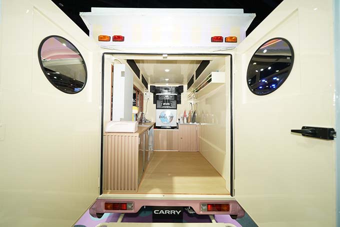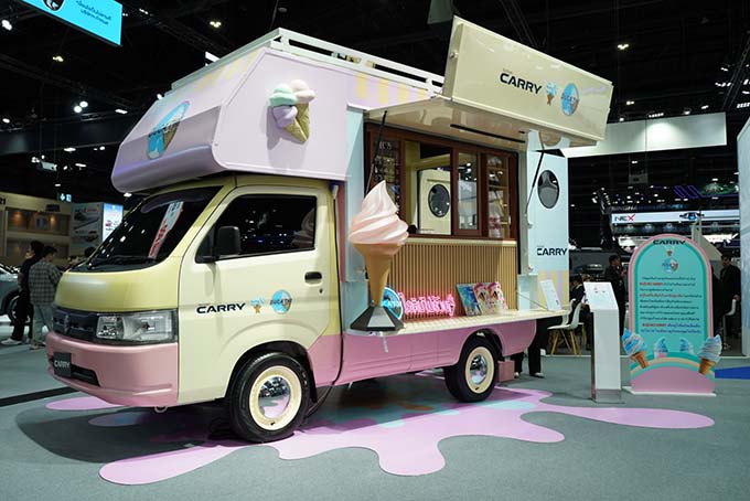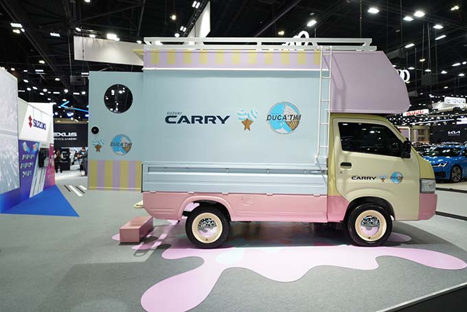 SUZUKI CARRY รถกระบะบรรทุกอเนกประสงค์ ที่ถูกออกแบบมาให้มีรูปลักษณ์ที่พร้อมจะนำไปดัดแปลงและพัฒนาต่อยอดให้เข้ากับทุกแนวทางของการดำเนินธุรกิจ จนเป็นที่ยอมรับในฐานะ Food Truck, Goods Truck และ Service Truck สามารถต่อยอดในการทำธุรกิจอื่นๆ เสมือนดั่งพาร์ทเนอร์คนสำคัญ ที่พร้อมจะสนับสนุนและร่วมขับเคลื่อนอยู่เคียงข้างผู้ใช้ด้วยความจริงใจ ราคาจำหน่ายเพียง 395,000 บาท โดยในงานนี้ ซูซูกิร่วมมือกับร้าน Duca’tim (ดูคาติม) แฟรนไชส์ไอศกรีม Soft Serve ชื่อดังคุณภาพพรีเมียม เพื่อตอกย้ำแนวคิด ‘Carry Your Dream’ สานฝันให้ธุรกิจเป็นจริงได้อย่างรวดเร็วและคุ้มค่า นำรถ SUZUKI CARRY มาดัดแปลงเป็น ‘รถไอศกรีมเคลื่อนที่ Duca’tim’ ที่ออกแบบมาอย่างลงตัวและครบวงจร รถคันนี้ไม่เพียงแต่โดดเด่นสะดุดตา แต่ยังมาพร้อมพื้นที่ใช้สอยและฟังก์ชันการใช้งานที่ครบครัน สำหรับอุปกรณ์จำหน่ายไอศกรีม ตลอดจนการจัดเก็บสินค้าได้อย่างลงตัว