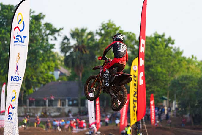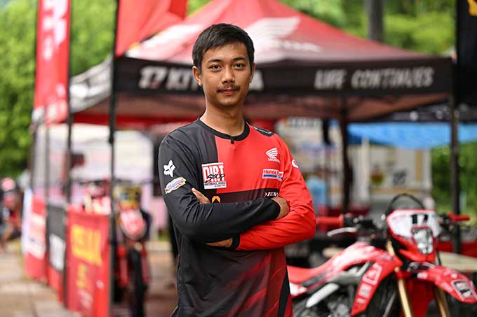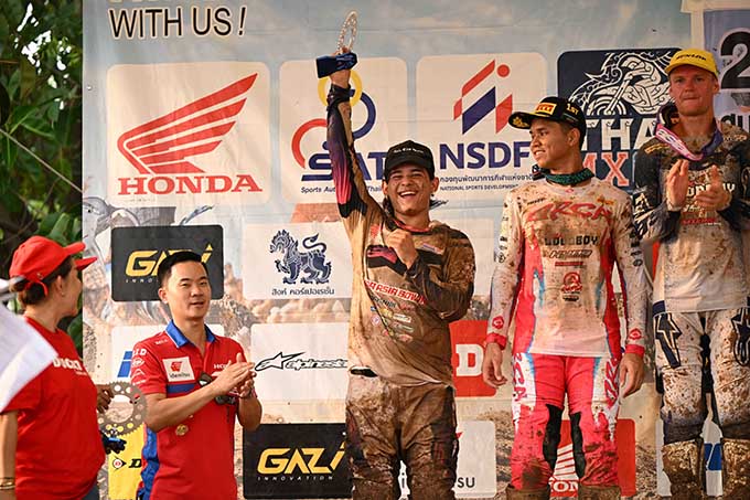 “ไตรตั้น” เตโชดม มีแสง หมายเลข 193 จากทีม Honda Racing Thailand Idemitsu Wannalak Motorsport ทะยานรถแข่ง Honda CRF250R ระเบิดโคลนขึ้นโพเดียมในอันดับที่ 3 ขณะที่ “คิ้วท์” พันธกานต์ บุญชาลี หมายเลข 17 ทีม Honda Asia Bowin Idemitsu S Motor เข้าเส้นชัยมาเป็นอันดับที่ 5
