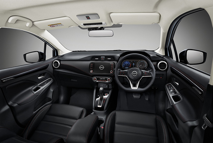 นิสสัน อัลเมร่า รุ่นปี 2026 มีรูปลักษณ์ที่ทันสมัย ปราดเปรียวยิ่งขึ้นด้วยกระจังหน้าแบบใหม่สีดำ กันชนด้านล่างทั้งหน้าและหลังสีดำ สำหรับในรุ่น VL สีทูโทนมีมือจับประตูสีดำเข้ากับหลังคาดำ รวมทั้งเพิ่มความเข้มสไตล์สปอร์ตในรุ่น V และ VL ด้วยชิ้นส่วนตกแต่งไฟหน้าสีดำ