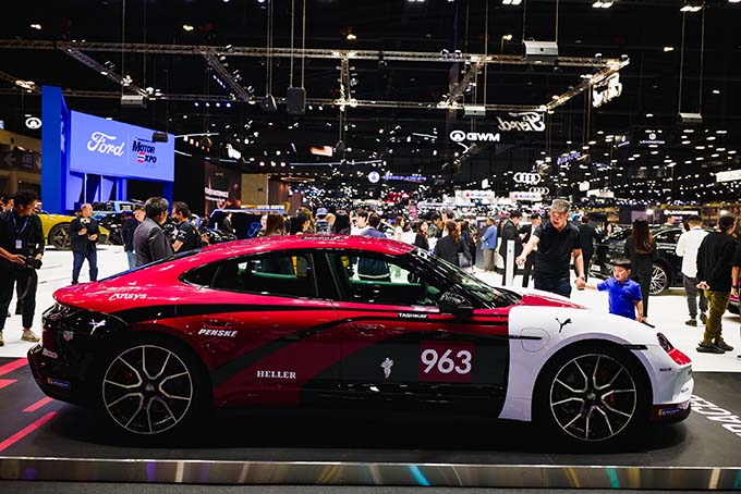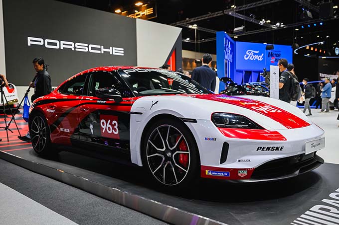 ที่บูธปอร์เช่ยังมีการจัดแสดง Porsche 963 LMDh รถแข่งต้นแบบระดับเรือธง ที่สะท้อนดีเอ็นเอมอเตอร์สปอร์ตของแบรนด์และความก้าวล้ำด้านวิศวกรรม หลังจากคว้าแชมป์รวมรายการ IMSA และคว้าอันดับที่สองในศึกความอึดระดับตำนานอย่าง 24 Hours of Le Mans ในปีนี้