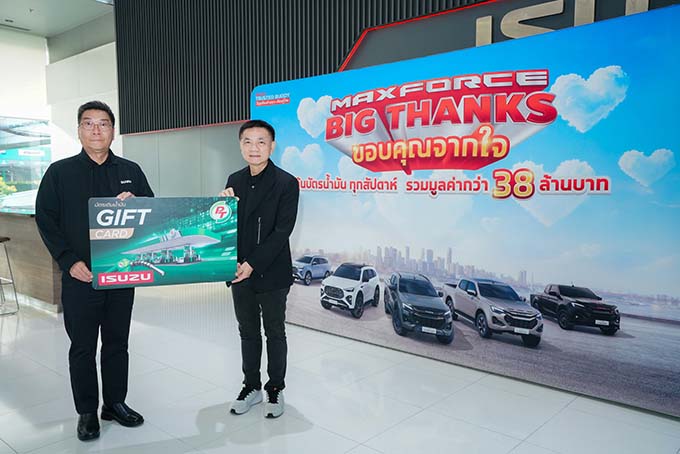 แคมเปญ “MAXFORCE BIG THANKS ขอบคุณจากใจ” สำหรับผู้ที่ซื้อ และรับรถอีซูซุดีแมคซ์ หรือรถยนต์นั่งอเนกประสงค์มิว-เอ็กซ์ ทุกรุ่น จากโชว์รูมอีซูซุทั่วประเทศ ระหว่างวันที่ 25 ตุลาคม – 30 ธันวาคม 2568 จะได้รับสิทธิ์ลุ้นบัตรเติมน้ำมัน PT รวม 1,907 รางวัล มูลค่ารวมกว่า 38,700,900 บาท โดยมีการจับรางวัลทั้งหมด 9 ครั้ง และประกาศผลผ่านทางเฟซบุ๊กเพจ All-New ISUZU D-MAX และ All-New ISUZU     MU-X รวมถึงช่องทางผู้จำหน่ายอีซูซุทั่วประเทศ