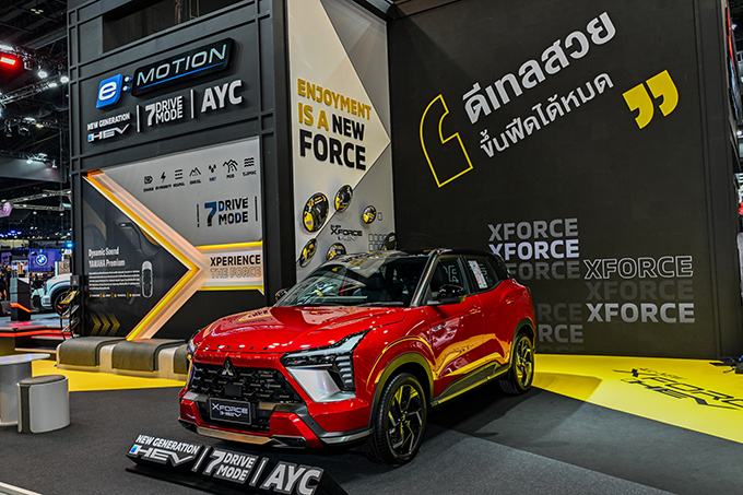 ไฮไลต์สำคัญภายในงาน นำโดย “ออล-นิว มิตซูบิชิ เอ็กซ์ฟอร์ส เอชอีวี”  ที่ได้รับกระแสตอบรับที่ยอดเยี่ยม กวาดยอดขายไปแล้วเกือบ 7,000 คัน นับตั้งแต่การเปิดตัวเมื่อช่วงต้นปีที่ผ่านมา พร้อมพ่วงรางวัลการันตีความสำเร็จด้วย รางวัลรถยนต์ยอดเยี่ยมประจำปี 2568 (Thailand Car of The Year 2025) จากสมาคมผู้สื่อข่าวรถยนต์และรถจักรยานยนต์ไทย (สรยท.) อีกด้วย ตอกย้ำความเป็นผู้นำในกลุ่มยานยนต์ไฮบริดอย่างแท้จริง โดดเด่นด้วยแนวคิด “Xperience the Force” มอบประสบการณ์การขับขี่ที่สนุก เร้าใจ และมั่นใจได้ในทุกเส้นทาง แบบฉบับ MITSUBISHI e:MOTION ที่ผสาน 3 เทคโนโลยีที่ล้ำสมัยที่สุดของมิตซูบิชิ มอเตอร์ส เพื่อยกระดับประสบการณ์การขับขี่ให้สมบูรณ์แบบยิ่งขึ้น ได้แก่ ระบบขับเคลื่อนฟูลไฮบริดเจเนอเรชันใหม่ โหมดการขับขี่ 7 รูปแบบ (7 Drive Mode) และระบบควบคุมการขับเคลื่อนและสมดุลขณะเข้าโค้ง (Active Yaw Control – AYC) พร้อม ช่วงล่างและระบบกันสะเทือน ที่ได้รับการพัฒนาขึ้นใหม่ ให้เหมาะกับทุกสภาพถนนในประเทศไทยจากการทดสอบจริงบนถนนของเมืองไทยกว่า 100,000 กิโลเมตร