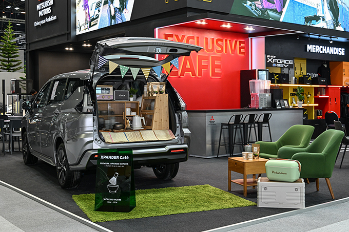 ภายในบูธดีไซน์ให้เป็น Lifestyle Hub ที่สะท้อนไลฟ์สไตล์ ความสนุก และประสบการณ์ที่แตกต่างในแบบมิตซูบิชิอย่างแท้จริง และมีการจัดแสดงรถยนต์ตกแต่งพิเศษที่สะท้อนหลากหลายไลฟ์สไตล์ เพื่อสร้างแรงบันดาลใจให้กับลูกค้า อาทิ มิตซูบิชิ เอ็กซ์แพนเดอร์ เอชอีวี ใหม่ ที่ดัดแปลงเป็นร้านค้าเปิดท้ายขนาดย่อม ในการต่อยอดธุรกิจ หรือการใช้งานเชิงพาณิชย์ มิตซูบิชิ เอ็กซ์แพนเดอร์ ครอส เอชอีวี ใหม่ ตกแต่งแนวผจญภัย เอาใจสายแคมป์ปิ้ง ติดตั้งฟังก์ชันอเนกประสงค์สำหรับกิจกรรมกลางแจ้ง และอีกหนึ่งไฮไลต์ ออล-นิว มิตซูบิชิ เอ็กซ์ฟอร์ส เอชอีวี ในเวอร์ชันตกแต่งพิเศษสไตล์รถแข่ง AXCR ถ่ายทอดจิตวิญญาณแรลลี่ เพื่อฉลองชัยชนะของทีมมิตซูบิชิ แรลลี่อาร์ต ที่คว้าแชมป์โอเวอร์ออลมาครองได้ในปีนี้ ให้ทุกท่านได้สัมผัสภายในงานอย่างใกล้ชิด