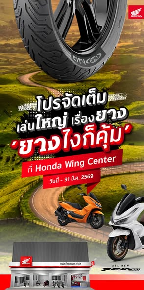 โปรโมชัน “ยางไงก็คุ้ม” มอบราคาพิเศษตั้งแต่วันนี้จนถึง 31 มีนาคม 2569 เพื่อให้ผู้ใช้รถจักรยานยนต์ฮอนด้ามั่นใจทุกเส้นทาง กับยางคุณภาพที่ช่วยเสริมความปลอดภัยในทุกการเดินทาง
