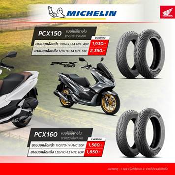 • ยางนอกล้อหลังขนาด 120/70-14 M/C 61P ราคาเส้นละ 2,350 บาท