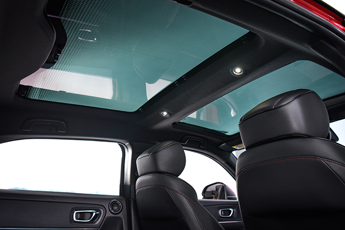 ครั้งแรกในโลกกับการเปิดตัวรุ่น RS ที่ประเทศไทย ยกระดับความสปอร์ตพรีเมียมไปอีกขั้น ด้วยดีไซน์สปอร์ตเอกซ์คลูซีฟ ตกแต่งพิเศษรอบคัน โดดเด่นด้วยกระจังหน้าโครเมียมแบบสปอร์ต พร้อมสัญลักษณ์ RS สัญลักษณ์ AMP UP บนกันชนหน้าด้านล่างกันชนหน้า-หลัง พร้อมชายกันกระแทกด้านข้างสีดำแบบสปอร์ต ตกแต่งด้วยโครเมียม ไฟเลี้ยวด้านหน้าแบบ LED Sequential ไฟท้ายแบบ LED Light Strip สี Smoke ล้ออัลลอยดีไซน์สปอร์ตขนาด 18 นิ้ว เผยมุมมองใหม่ด้วยหลังคากระจกแบบพาโนรามา (Panoramic Glass Roof) พิเศษยิ่งขึ้นกับสีภายนอกสีแดงอิกไนต์ ที่มาพร้อมหลังคาสีดำสไตล์ทูโทน สะท้อนความสปอร์ตไปอีกขั้น ภายในห้องโดยสารมาพร้อมเบาะหนังสีดำตกแต่งด้วยด้ายสีแดงแบบสปอร์ต แป้นเบรกและแป้นคันเร่งสไตล์สปอร์ต พวงมาลัยสีดำตกแต่งด้วยด้ายสีแดง และแผ่นกั้นห้องสัมภาระท้าย