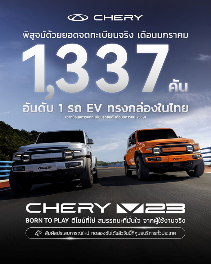 เชอรี ประเทศไทย เร่งเครื่องต้นปี 2569CHERY V23 ทะลุ 1,300 คัน