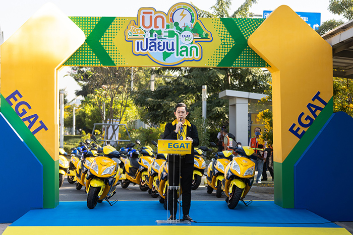 ด้านนายบุญญนิตย์ วงศ์รักมิตร ผู้ว่าการ กฟผ. เปิดเผยว่า การเดินหน้านำร่องรถจักรยานยนต์ไฟฟ้ารับจ้างสาธารณะในพื้นที่อำเภอบางกรวยเป็นหนึ่งในการดำเนินงานเพื่อสนับสนุนนโยบาย EGAT Carbon Neutrality ลดปัญหาการปล่อยมลพิษทางอากาศและฝุ่น PM 2.5 จากภาคการขนส่ง รวมถึงการยกระดับคุณภาพชีวิตของประชาชน โดยวันนี้ กฟผ. ได้ส่งมอบรถจักรยานยนต์ไฟฟ้า ENGY ซึ่งเป็นรถจักรยานยนต์ไฟฟ้าเบอร์ 5 ภายใต้แบรนด์ กฟผ. และได้รับการจดทะเบียนสาธารณะอย่างถูกต้องจำนวน 51 คัน ให้แก่ผู้ขับขี่รถจักรยานยนต์รับจ้างสาธารณะเพื่อทดลองให้บริการประชาชนเป็นระยะเวลา 1 ปี ซึ่งมหาวิทยาลัยเทคโนโลยีพระจอมเกล้าพระนครเหนือและ กฟผ. จะศึกษาข้อมูลพฤติกรรมการใช้งานของผู้ขับขี่ ผลกระทบด้านพลังงาน เศรษฐกิจ สังคม ชุมชน และสิ่งแวดล้อม รวมถึงความพึงพอใจของผู้ใช้บริการ เพื่อขยายผลสู่รถรับจ้างสาธารณะทั่วประเทศ สำหรับรถจักรยานยนต์ไฟฟ้า ENGY ขับเคลื่อนด้วยมอเตอร์ไฟฟ้า 3 กิโลวัตต์ วิ่งได้ระยะทาง 100 กิโลเมตร ต่อการชาร์จ 1 ครั้ง ทำความเร็วสูงสุด 80 กิโลเมตรต่อชั่วโมง รับน้ำหนักได้มากกว่า 150 กิโลกรัม มีการติดตั้งระบบ GPS Tracking เพื่อติดตามตำแหน่งของรถ และระบบควบคุมความปลอดภัย ระบบตัดคันเร่งเมื่อนำขาตั้งลง ทำให้ผู้ขับขี่และผู้รับบริการเกิดความรู้สึกมั่นใจ