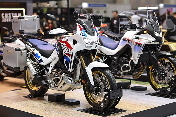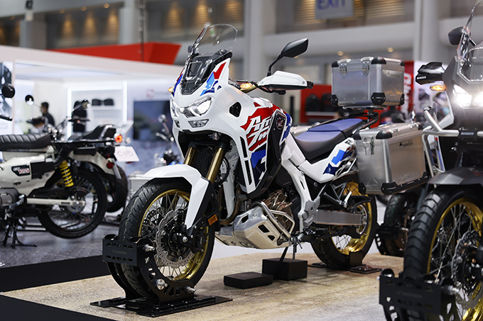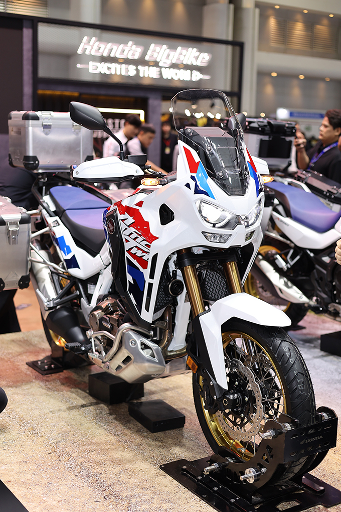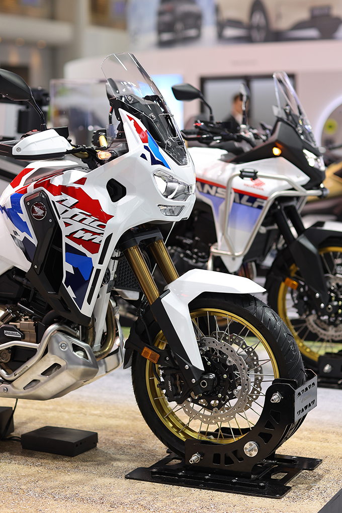 ตามมาด้วยไลน์อัปรถจักรยานยนต์สายแอดเวนเจอร์ นำโดย New Honda CRF1100L Africa Twin ภายใต้คอนเซปต์ ‘True Adventure Never End การผจญภัยที่แท้จริง ลุยได้ไม่มีวันจบ’ และ New Honda XL750 TRANSALP ภายใต้คอนเซปต์ ‘Mountains Are Calling เมื่อจุดพีกเรียกหา…ได้เวลาสัญชาตญาณลุย’ สองโมเดลที่ผสานสมรรถนะและความคล่องตัวสำหรับผู้รักการผจญภัยอย่างแท้จริง โดย New Honda CRF1100L Africa Twin DCT โดดเด่นด้วยสีใหม่ PEARL GLARE WHITE ผสานลายกราฟิกไตรคัลเลอร์ใหม่ให้ความ Aggressive Rally มากขึ้น