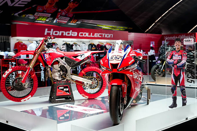ร่วมสัมผัส และภาคภูมิใจไปกับมุมโชว์รถแข่ง Honda CBR1000RR-R และ Honda CRF450R ของทีม HRC โดยมีนักบิดไทย อย่าง “ก้อง สมเกียรติ” และ “นีโม่ จีรัฎฐ์” แข่งขันในรายการระดับโลก รวมถึงทัพรถแข่ง Honda CBR Series จากทีม Honda Racing Thailand ของนักแข่งดาวรุ่งชาวไทย ภายใต้แนวความคิด “Dare To Dreams” รวมถึงรถแข่งตัวแชมป์ Honda CBR Trophy Series และที่สุดของรถจักรยานยนต์ฮอนด้าบิ๊กไบค์ จากสายแต่งหลากหลายรุ่น ไม่ว่าจะเป็น Sport, Touring และ Adventure ซึ่งถูกนำมาจัดแสดงให้ชมภายในงาน