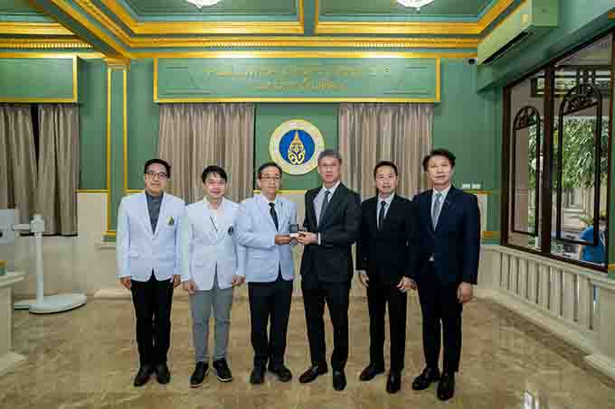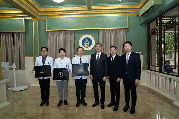 ให้แก่ กองทุนห้องผ่าตัด โรงพยาบาลศิริราช โดยได้รับเกียรติจาก ศาสตราจารย์ นายแพทย์ ธวัชชัย อัครวิพุธ (ที่ 3 จากซ้าย) รองคณบดีและผู้อำนวยการ โรงเรียนแพทย์ศิริราช,รองศาสตราจารย์ นายแพทย์ นริศ กิจณรงค์ รองหัวหน้า ฝ่ายบริการ ภาควิชาจักษุวิทยา คณะแพทยศาสตร์ศิริราชพยาบาล มหาวิทยาลัยมหิดล และ ศาสตราจารย์ ด๊อกเตอร์ นายแพทย์ วิปร วิประกษิต แพทย์ผู้เชี่ยวชาญ สาขาโลหิตวิทยาและอองโคโลยี (มะเร็งวิทยา) ภาควิชากุมารเวชศาสตร์ คณะแพทยศาสตร์ศิริราชพยาบาล มหาวิทยาลัย มหิดล เป็นผู้รับมอบ ณ ห้องรับรองงานองค์กรสัมพันธ์และกิจการพิเศษ ตึกอำนวยการ ชั้น 1 โรงพยาบาลศิริราช